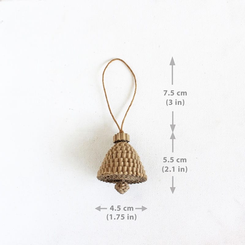 This adorable bell is a handcrafted masterpiece born from recycled corrugated packaging paper. It radiates a heartwarming tale of transformation, turning everyday materials into enchanting symbols of merriment.